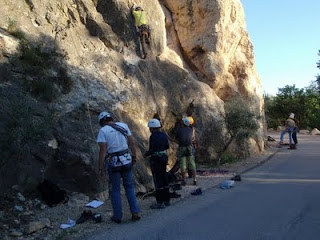 En primer lloc van poder comprovar les lleis de la gravetat amb una ràpel autoassegurat, per passar seguidament a fer el tast de la roca pujant pels morrals de segon. El primer contacte amb el grigri, les cintes expres, la corda, els peus de gats que apreten molt…