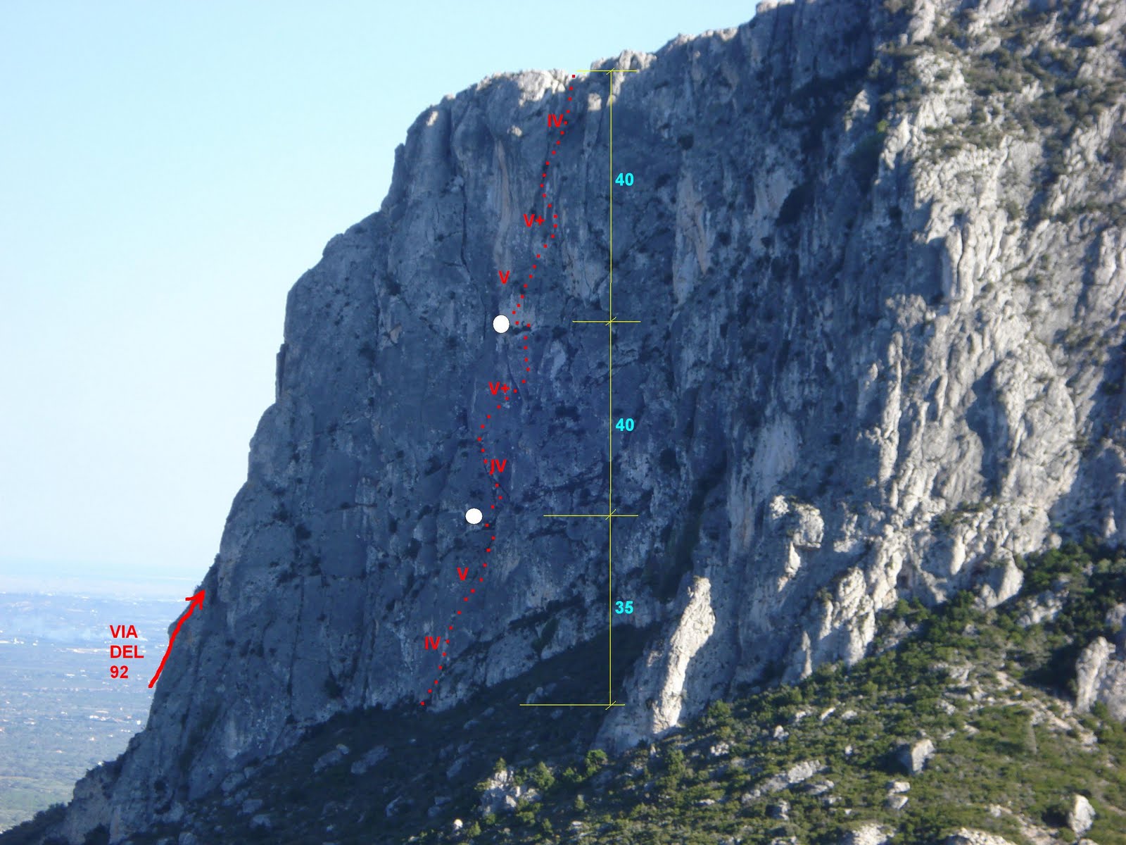 Per l’esperó de l’esquerra puja una altra via que va ser oberta la primavera del 92 per J. C. Bel (Cucala), V. Navarro i J. Tiron