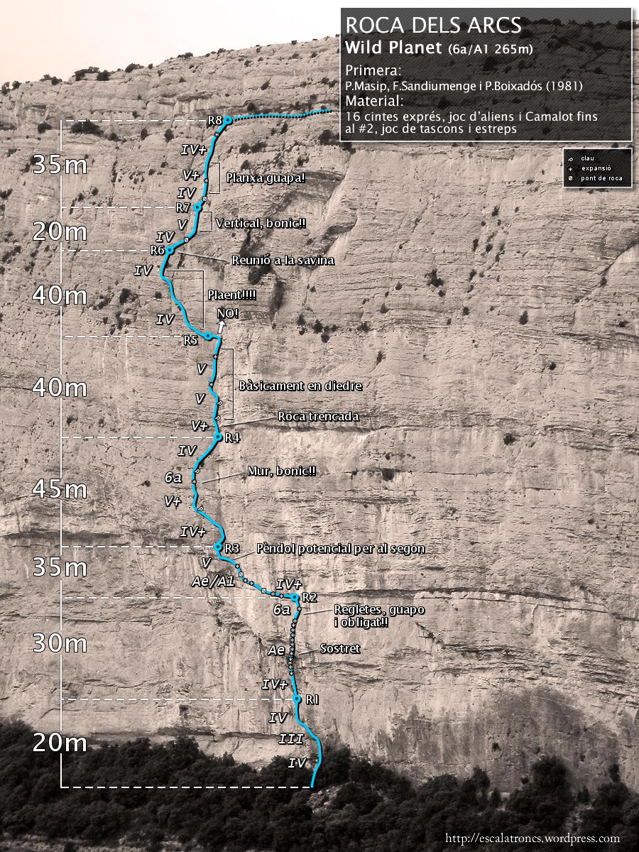 Matinem però no prou, per què trobem dos cordades de “pardillos” per davant. Amb paciència afrontem la paret; escalada atlètica, equipament just als llocs clau, bona roca i una bona ressenya per no perdre l’itinerari. Al cap de cinc hores arribem a dalt de tot després d’haver fet llargues esperes a les reunions.