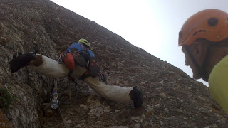 La via GAM del Bisbe és segurament la més repetida, amb un itinerari elegant, força assegurat i amb dos possibilitats d’escalar-lo; en lliure(6c) per als més forts (David), o agarrant-se (Ae) per als normalets (resta de cordada).