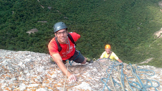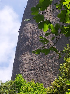 Si vas a escalar a Montserrat a l’estiu has de buscar l’ombra de les grans parets orientades al nord i en aquest cas els Frares Encantats són un bon lloc per fer metres.